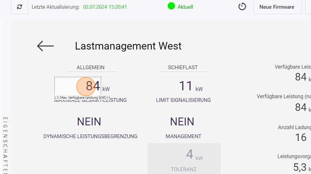1. Navigieren Sie zu Ihrer Anlage auf Ihrem Server 2. Wählen Sie eine Wallbox/Ladestation aus, bei welcher Sie die Leistung begrenzen möchten 3. Mithilfe des Buttons kommen Sie auf die Wallbox-Einstellungen 4. Unter "Maximale Leistung" können Sie die ...
