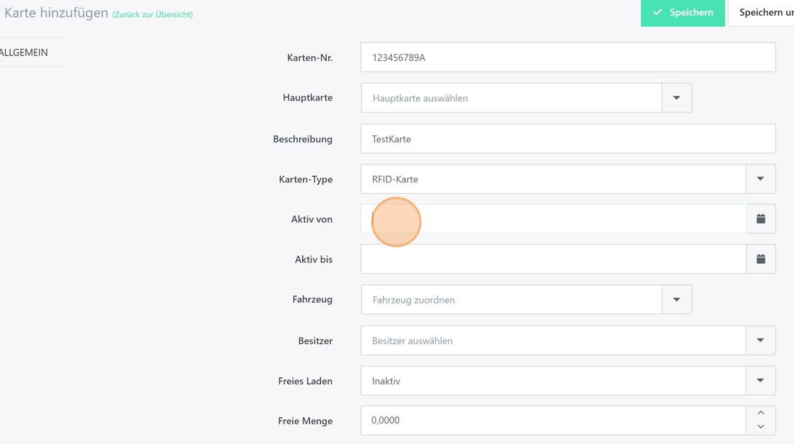 18. Nach Konfiguration der Kartendetails müssen Sie Ihre Einstellungen mit "Speichern" speichern, damit die Karte angelegt wird