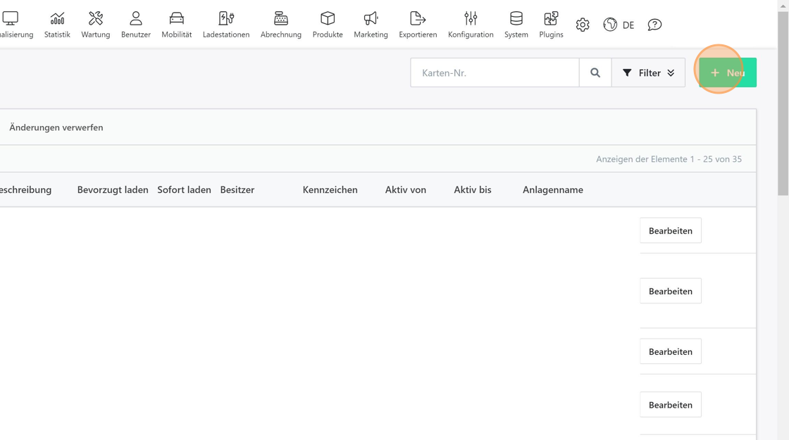 4. Klicken Sie auf “+ Neu”, um eine neue Karte anzulegen