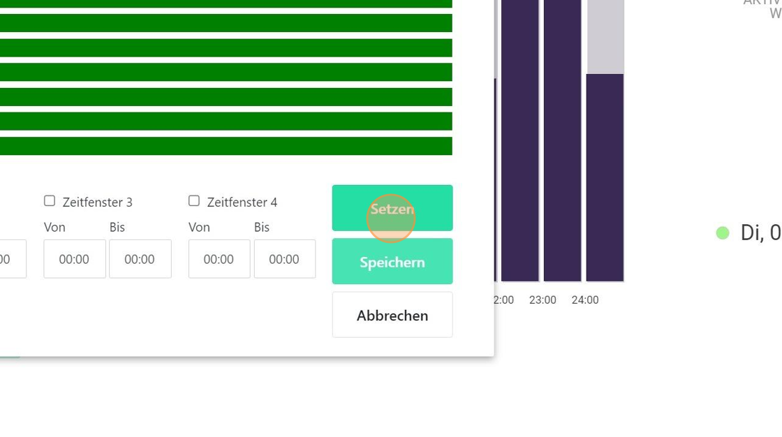 14. Anschließend klicken Sie "Setzen". Sie sollten nun die aktiven Zeiten grün hinterlegt sehen.